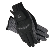 Economical, durable and comfortable glove for beginners. Grippy houndstooth pattern palm for confidence. Back is black domy synthetic suede for professional appearance. Machine washable. Good value for the beginning rider.
